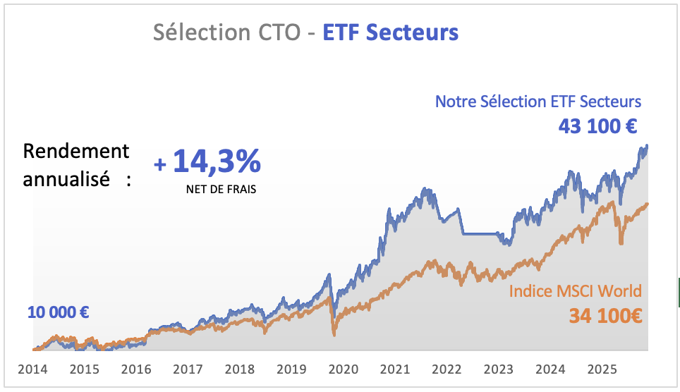 En utilisant une approche dynamique d'allocation sectorielle, le modèle a pu générer des rendements nettement supérieurs à ceux de l'indice de référence des actions Mondiales (MSCI World), tout en limitant des pertes importantes lors des phases de baisse du marché.